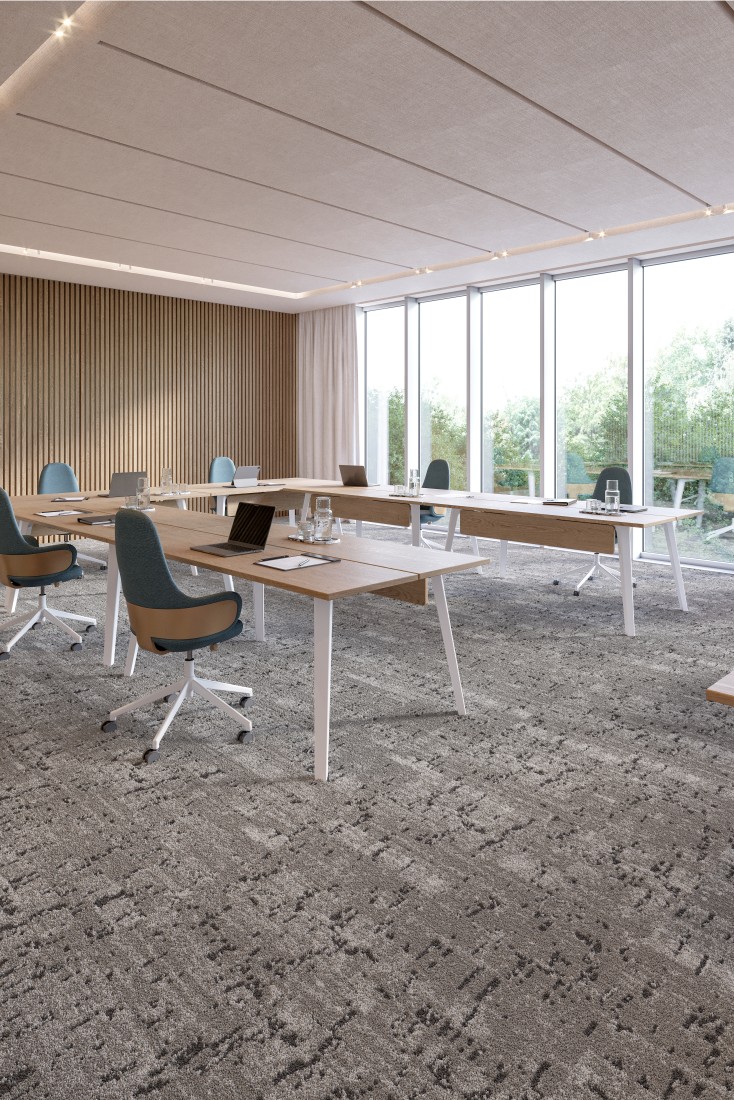 Net als de andere tegels in de collectie is Zoom respectvol voor het milieu, bestand en gemakkelijk schoon te maken dankzij het 100% gerecyclede en oplossingsgekleurde Econyl-garen. Op aanvraag is Zoom beschikbaar met een gerecyclede Sonic Confort akoestische achtergrond.