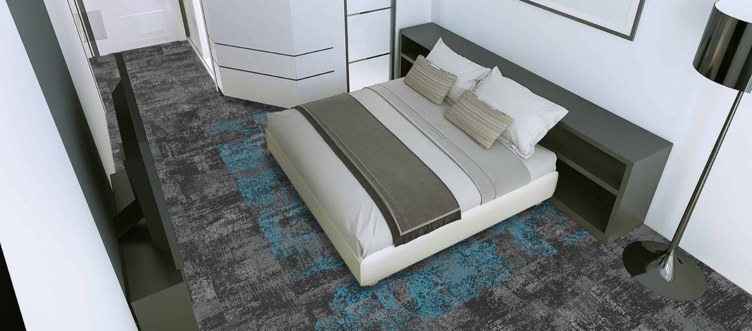Het unieke reliëfspel van de Léon tapijttegel dat standaard verkrijgbaar is met een zwarte ondergrond speelt net als beroemde abstracte schilderijen met het licht. Deze tapijttegel met structuur is ideaal om naar hartenlust te combineren met andere motieven in het standaard 50 x 50 cm tegelformaat uit de Carré Couture collectie van tapijttegels. Kies zelf de kleuren van het motief uit de 32 harmonieën die beschikbaar zijn in onze Balsan Design Studio vanaf 400 m². Onze stylisten gaan verder en bieden u de mogelijkheid om alle gemeenschappelijke en privéruimtes van uw hotels en kantoren te personaliseren met overgangen in eenzelfde kleurenharmonie, vanaf een oppervlakte van 800 m². Om de motieven te diversifiëren en dit tapijtontwerp optimaal te benutten, volgen hier onze adviezen voor het combineren van Léon met andere Balsan-producten.