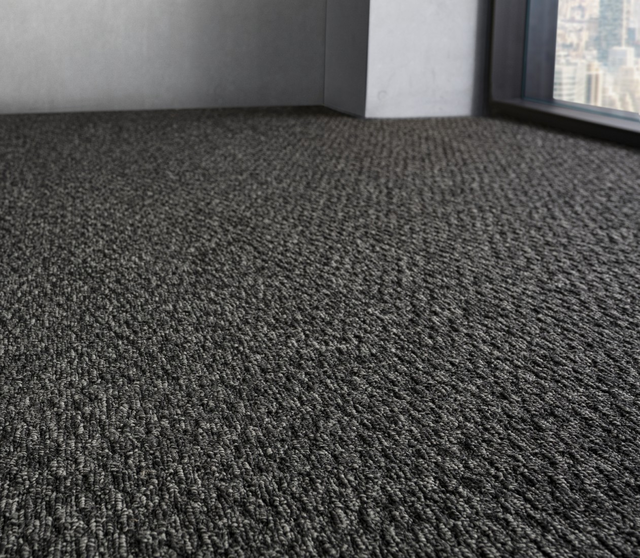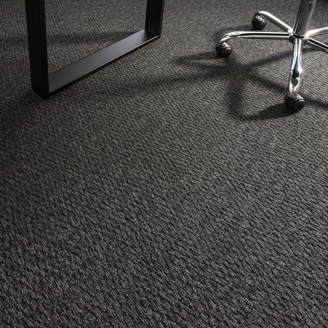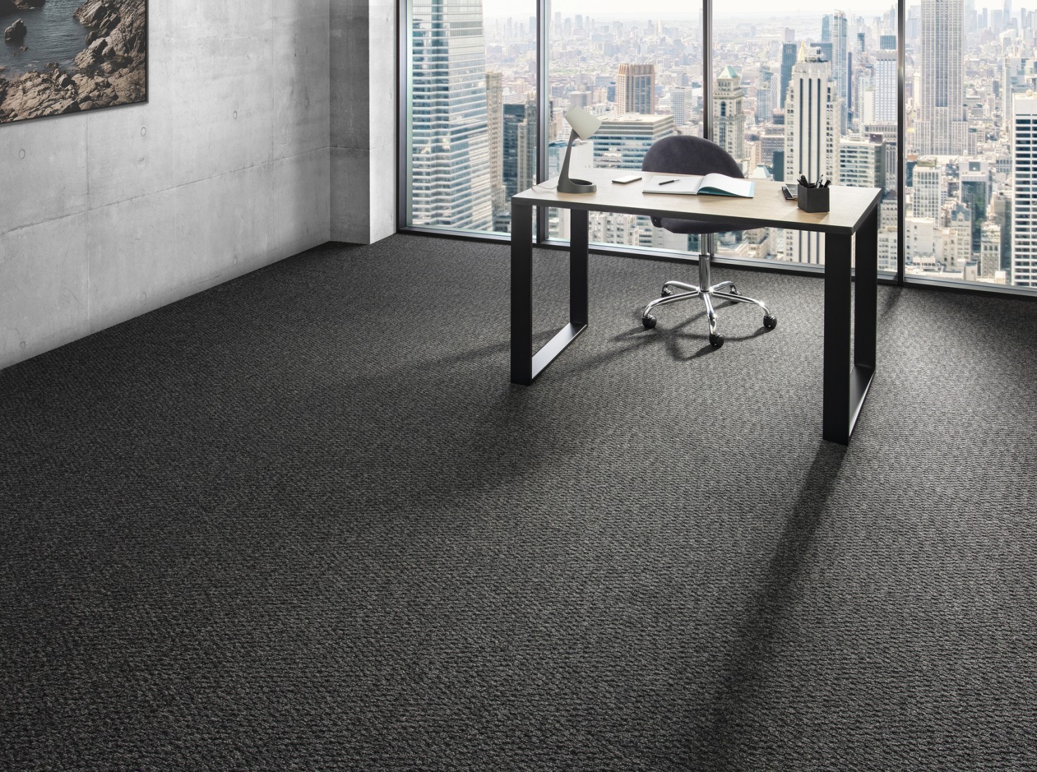 Met de Skyscraper-textieltegels hebben architecten en interieurontwerpers in de commerciële sector toegang tot een nieuw en waardevol product voor hun projecten voor kantoorinrichting. Dit getufte design met lusjes van polypropyleen van 450 gram, gemaakt van in de massa geverfde vezels, heeft een echte urban look, met zijn gestructureerde effect en onregelmatige visgraatpatroon geïnspireerd op de rooftops van wolkenkrabbers in New York. Het kleurverloop creëert een eenheid: drie tinten grijs en een donkerblauwe leisteen-tint.