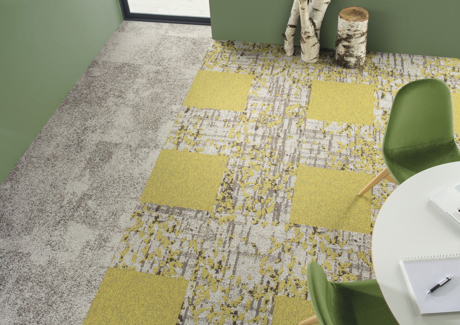 Uitgerust met rijk tuft van 1.050 g/m2 combineren de gestructureerde tapijttegels Eden HD van 50 x 50 cm moeiteloos met de andere motieven van de tapijtcollectie Wild Nature, maar ook met effen tapijten (Pilote², Nexus …) en LVT-vloerbedekkingen.