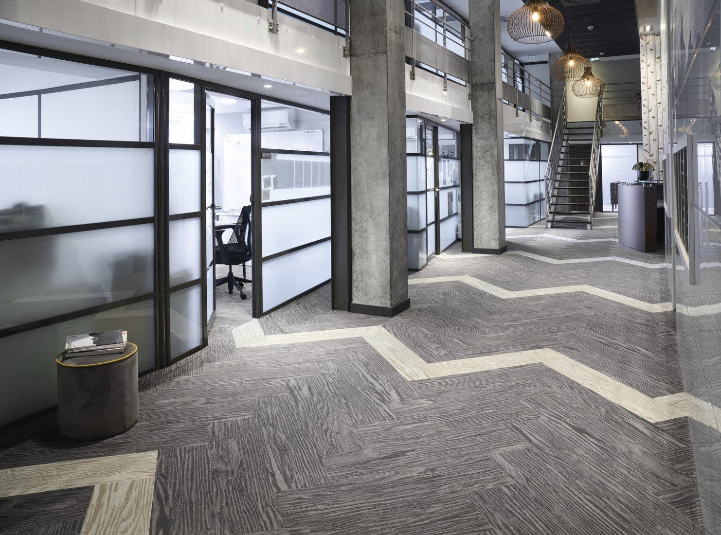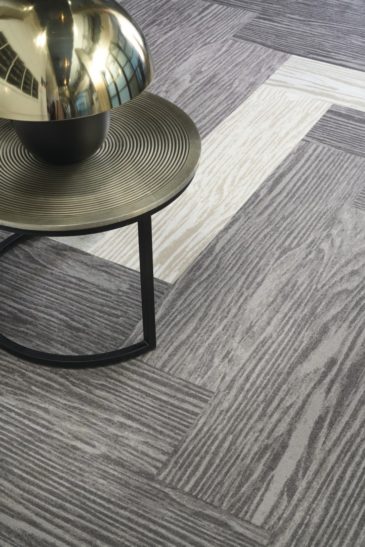 In overeenstemming met het "parketplank"-formaat van de Up-Down-collectie, zijn ook de drie tinten van de Woodlands-lijn voorzien van houtpatronen: wit patina, gouden eik en, iets soberder, een donkere wengé nerf. Deze drie varianten kunnen worden gelegd als één kleur of in een legpatroon van mix & match, om de vloer meer dynamiek en variatie te geven, of zelfs om vormen of paden te creëren. Hetzelfde geldt voor het legpatroon, dat veel ruimte laat voor inspiratie: monolithisch, als een klassieke parketvloer; in visgraat, om het perspectief te veranderen; labyrintisch, om de vloer een speels karakter te geven; en verspringend, om de symmetrie te doorbreken. Hoe het ook wordt gelegd, het geheel creëert een zen-sfeer, zoals een tatami. Als u ten slotte houdt van het samenspel van materialen en stijlbreuken, kunt u Woodlands-tapijtstroken combineren met de Balsan LVT-collecties, bijvoorbeeld de Symbiance Dryback-tapijttegels met minerale patronen.