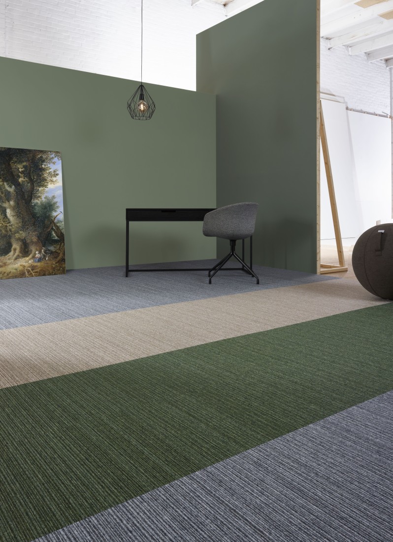 RHYTHM is een tapijttegel van 50 x 50 cm. Deze basistegel staat voor de regelmaat van het dagelijks leven. Hij vormt een perfecte combinatie met TRADITION. Het gestreepte patroon van RHYTHM verbindt twee gekleurde zones, opgebouwd uit TRADITION-tegels.