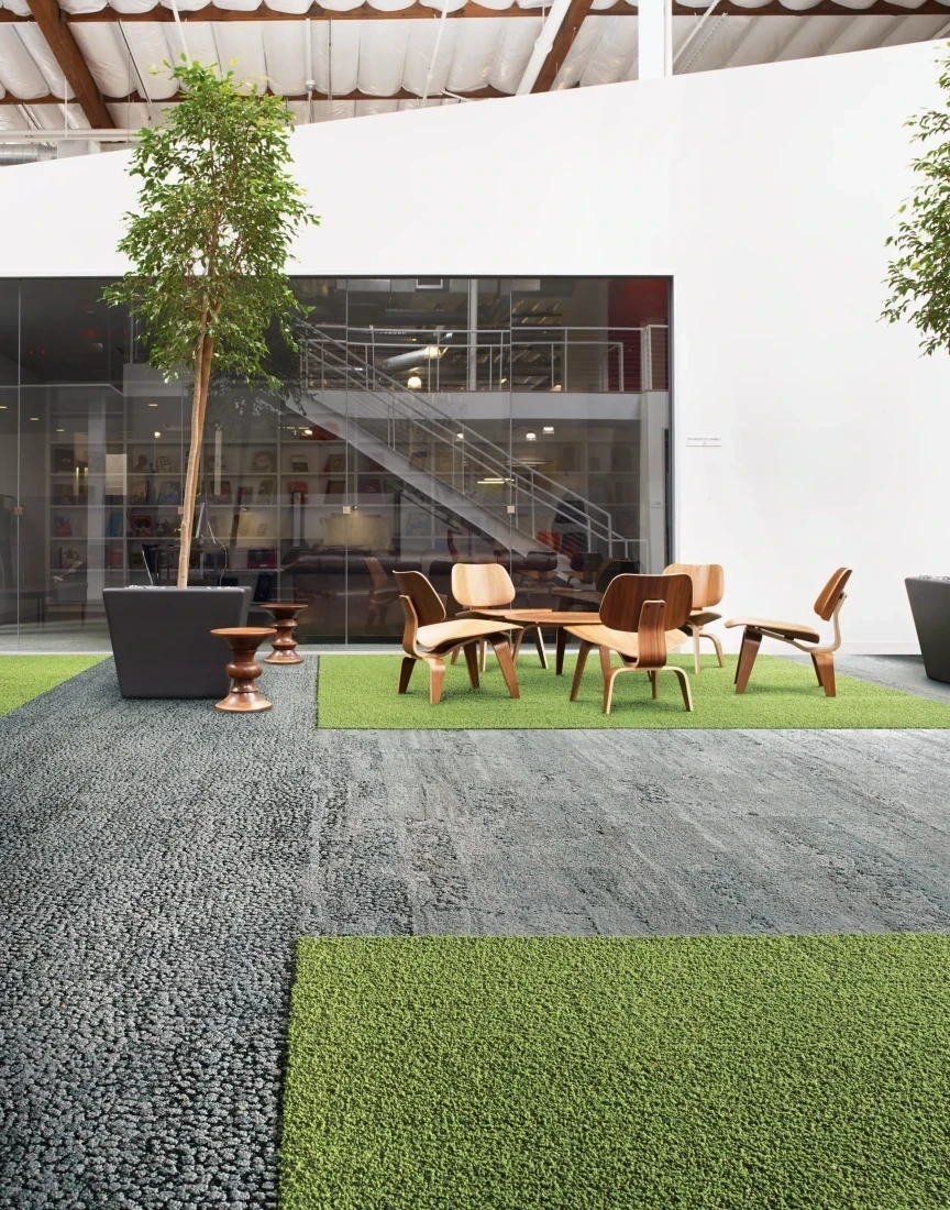 De tapijttegels HN810, HN850 en HN840, zijn gebaseerd op natuurlijke elementen. Deze tegels gaan naadloos in elkaar over in een organische flow waarbij de hoeken en randen van de tegels onzichtbaar lijken te zijn.