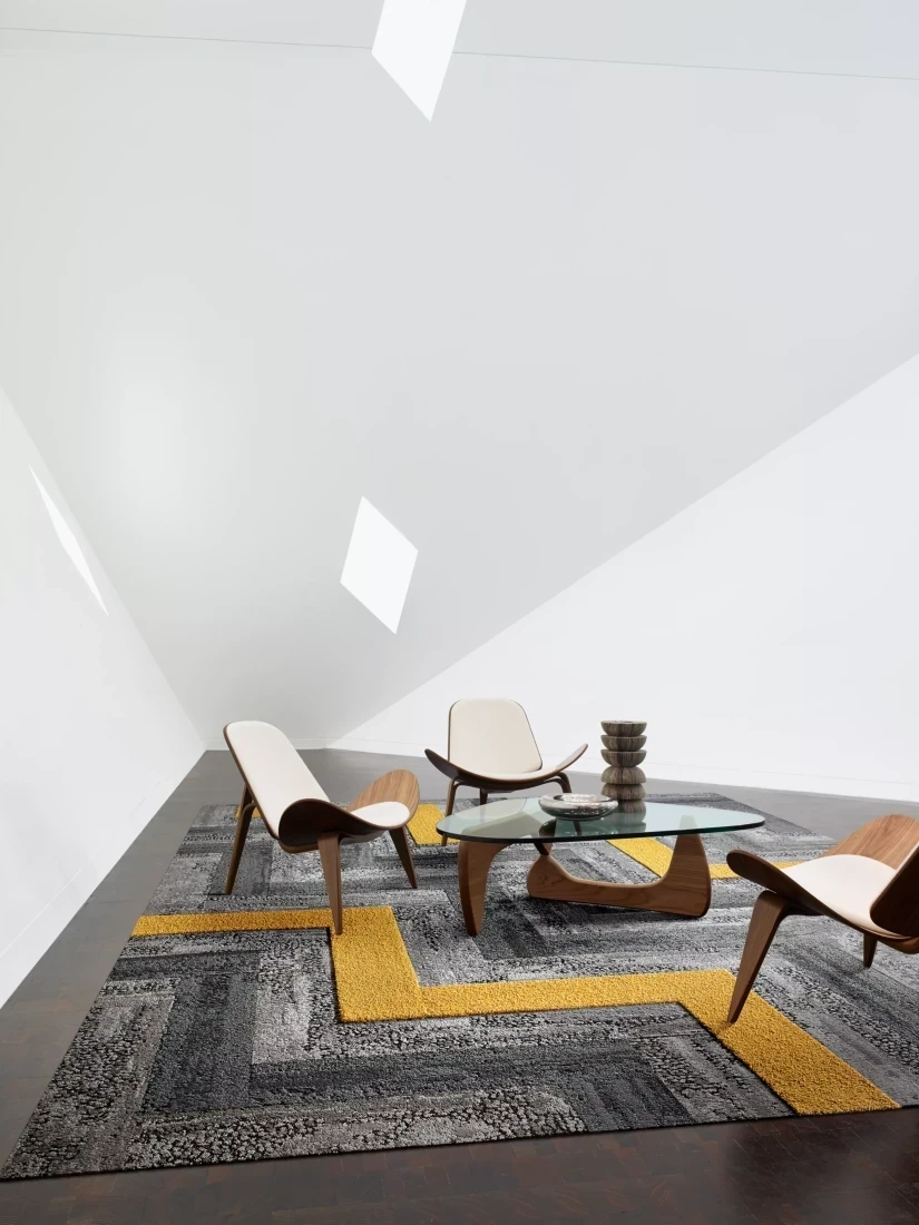 De tapijttegels HN810, HN850 en HN840, zijn gebaseerd op natuurlijke elementen. Deze tegels gaan naadloos in elkaar over in een organische flow waarbij de hoeken en randen van de tegels onzichtbaar lijken te zijn.