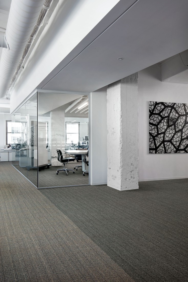 Het modulaire tapijt Old Street™ geeft een nieuwe interpretatie van vertrouwde texturen.