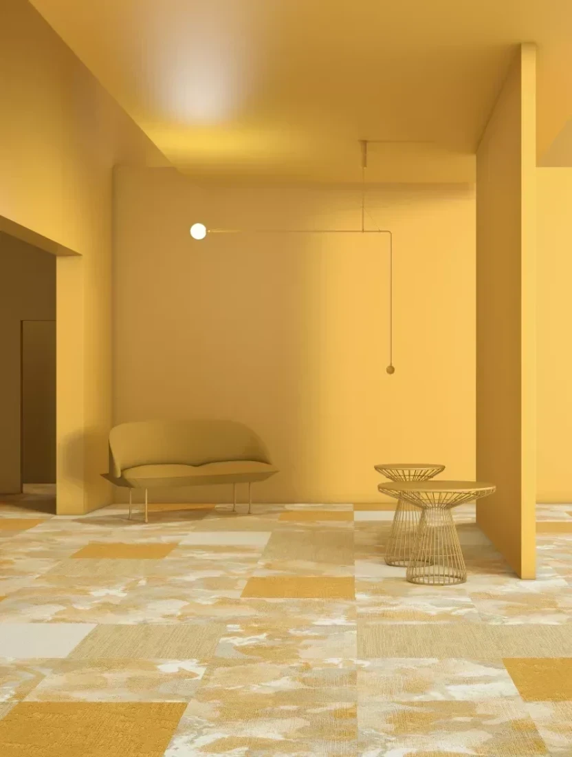 Fluid& brengt een gedurfd vleugje kleur in je ruimte. Deze tapijttegel-collectie tart conventionele normen door imperfecties in haar patronen te omarmen, wat bijdraagt aan haar unieke en boeiende uitstraling. Wat de collectie kenmerkt is een opmerkelijk gevoel van vloeibaarheid en beweging, alsof de patronen zelf in een staat van sierlijke beweging zijn.