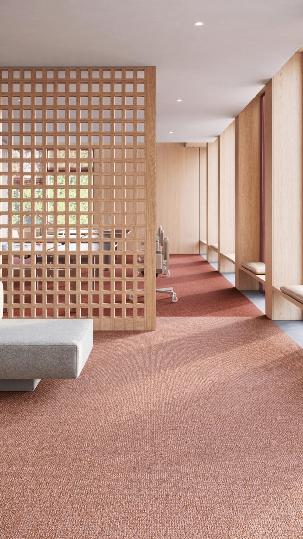 .Met een subtiel grafisch ontwerp en een textielachtige rasterstructuur brengen de DESSO Enlaced tapijttegels licht en levendigheid in moderne ruimtes. De collectie is geïnspireerd op de speelse patronen die ontstaan wanneer daglicht door rasterachtige structuren valt. Het resultaat: een reeks lichtdoorstroomde kleuren, van ingetogen neutrale tinten tot uitgesproken kleuraccenten.