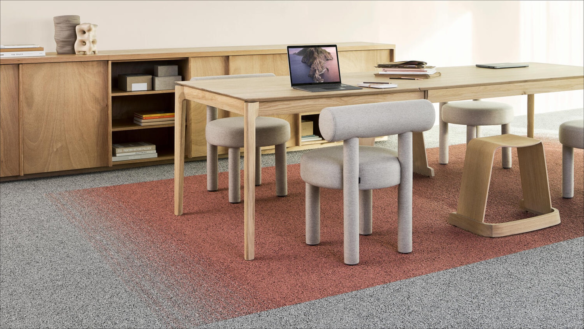 Een reis door kleur. DESSO Fuse verbeeldt binnenruimtes als kleurvelden, met vloeiende overgangen om flexibele, multifunctionele werkruimtes te creëren. Op de natuur geïnspireerde tinten en vloeiende overgangen van kleur naar kleur betekenen dat u flexibiliteit kunt ontwerpen in elk vloerplan, zodat u zacht gestructureerde ruimtes kunt creëren die verschillende landschappen, stemmingen en seizoenen oproepen.