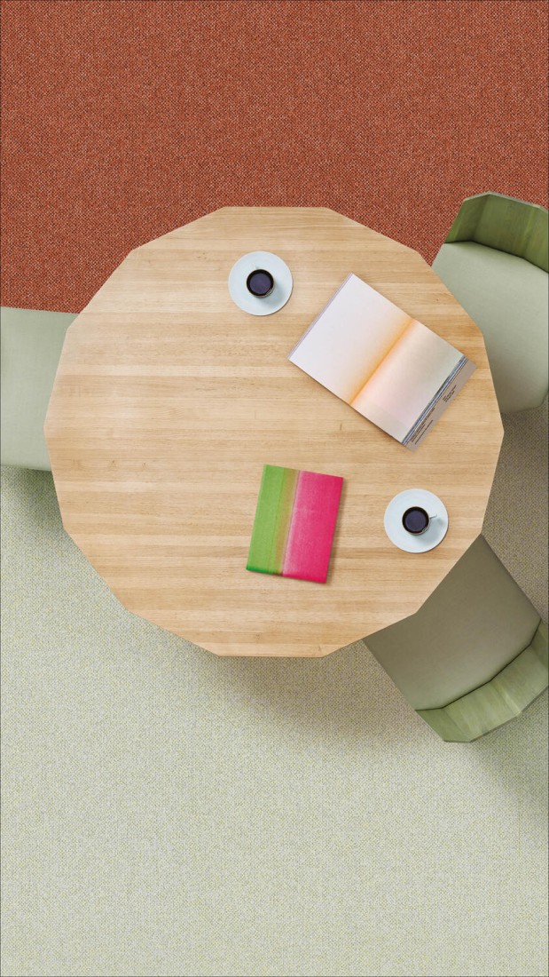 Het tapijttegelontwerp DESSO Solid van Studio Stefan Scholten is een studie van garen- en kleurencombinaties geïnspireerd op garenvezels uit het tapijtrecyclingproces van Tarkett. Deze studie resulteerde in een all-over design met een luxueuze uitstraling. De verschillende kleuren in de gemêleerde garens geven een verrassende kleurrijke indruk wanneer ze van dichtbij worden bekeken.