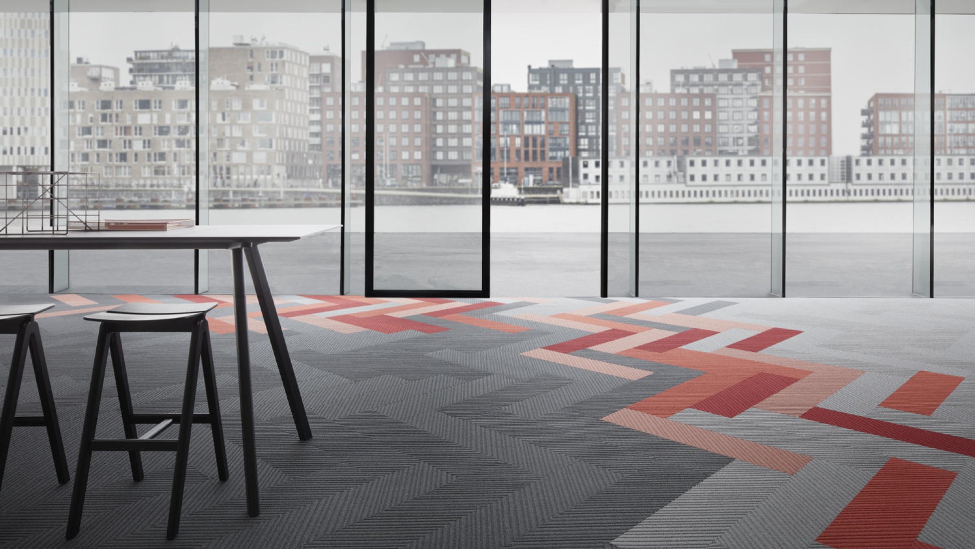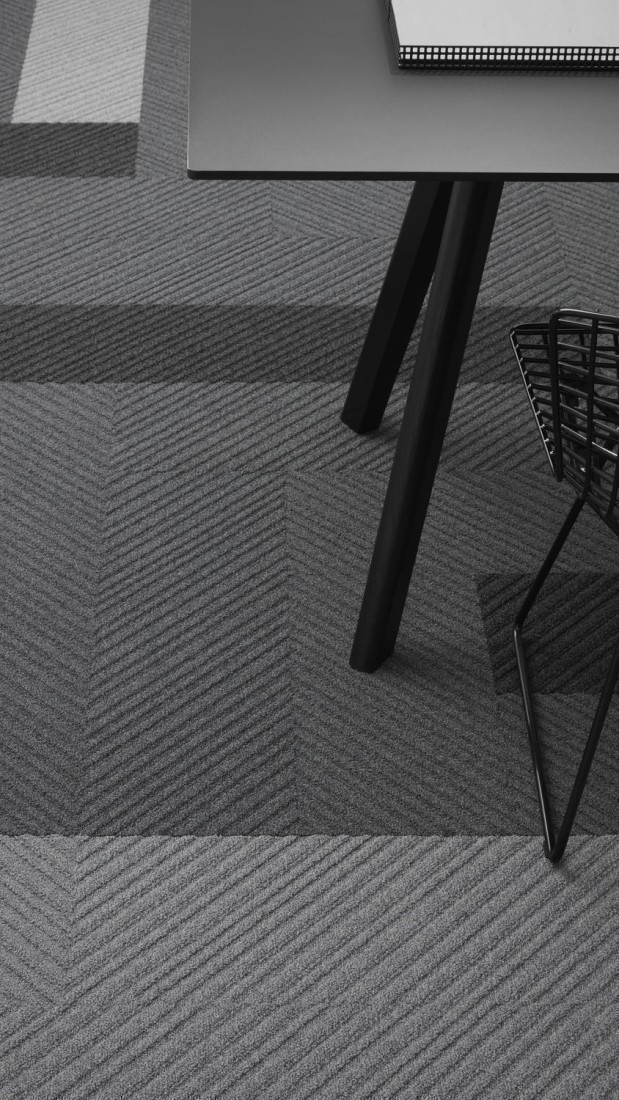 Desso Traverse in 15 kleuren direct leverbaar, gëinspireerd op het modernisme. Het ontwerp van de DESSO Traverse-tapijten, onderdeel van de Essentials collectie, is geïnspireerd op iconisch modernisme en bestaat uit strakke diagonale lijnen. Deze ontstaan door kleine verschillen in verftinten en door gebruik te maken van garens met een lichte structuur. Daardoor is het patroon dat u ziet afhankelijk van waar u in de ruimte bent en waar het licht vandaan komt. Als u door de ruimte beweegt, ervaart u een subtiel dynamisch effect waarbij telkens verschillende delen van de vloer worden geaccentueerd als gevolg van de nuances in licht en schaduw. Met twee verschillende diagonalen, schuin naar beneden van links naar rechts en het spiegelbeeld ervan, kan de ontwerper klassieke visgraat- en natuursteenpatronen maken. Door onregelmatige patronen te gebruiken, kan de ontwerper ook spelen met richting, ritme en stroken en zo simpele lijnen een onverwacht rijke persoonlijkheid geven.