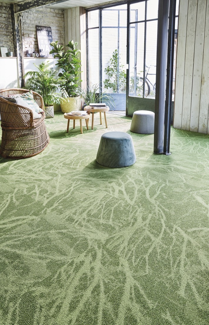 De takken die het motief vormen, zijn geïnspireerd op de onmetelijke plantenwereld en geven uw werkruimtes een ongerepte esthetiek en natuurlijkheid. Dit is een milieuvriendelijk tapijt, samengesteld uit 100% geregenereerd polyamidegaren, voorzien van het GUT-label. Deze luspooltegel van fluweel met structuur is bestemd voor werkruimtes en ook verkrijgbaar met de akoestische Sonic Confort-onderlaag ter bestrijding van de geluidshinder waarvan vaak sprake is in kantoren. De tegel draagt ook bij aan het verkrijgen van LEED-credits, een Amerikaans label dat gespecialiseerd is in het bewaken van de milieukwaliteit van gebouwen.