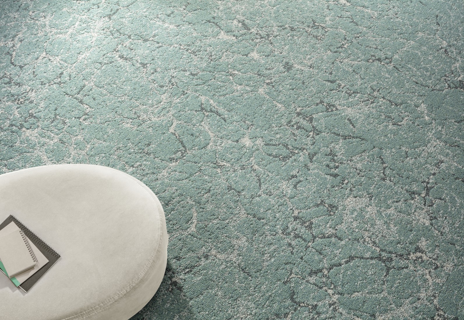 De textieltegels Baltique HD bootsen dit precieze moment, waarop het zeewater bevriest, met een surrealistische schoonheid na. Het groenblauwe water vormt onregelmatige stroompjes tussen de glinsterende, doorschijnende uitgestrekte ijsvlaktes. Wat een genot om de schoenen uit te doen, en op blote voeten te lopen over deze zachte, uitnodigende ijskap! Een fascinerend decor dat een kantoor of een coworking-ruimte een rustgevende aanbik verschaft.