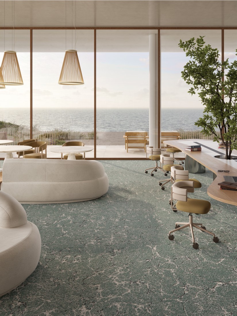 De tapijttegel Baltique HD is op verzoek leverbaar met een akoestische Sonic Confort-rug.