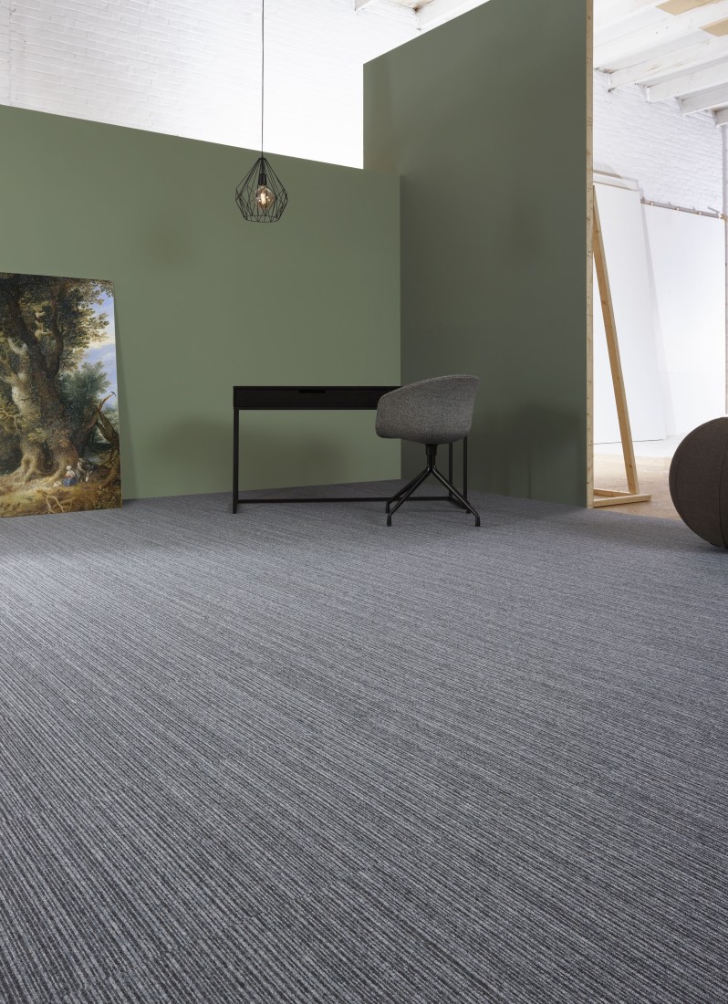 RHYTHM is een tapijttegel van 50 x 50 cm. Deze basistegel staat voor de regelmaat van het dagelijks leven. Hij vormt een perfecte combinatie met TRADITION. Het gestreepte patroon van RHYTHM verbindt twee gekleurde zones, opgebouwd uit TRADITION-tegels.