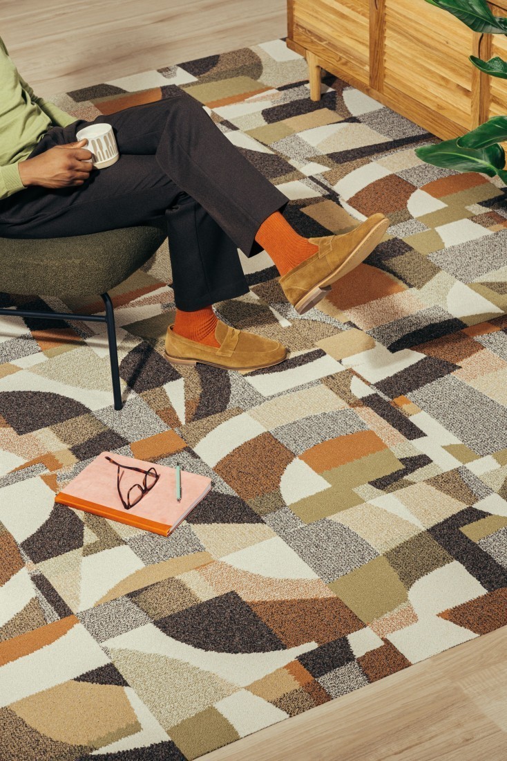Het ontwerp van Circa Then is geïnspireerd op Mid-Century-design. Het bevat grootschalige overlappende geometrische vormen om een gedurfde retro-look te creëren.