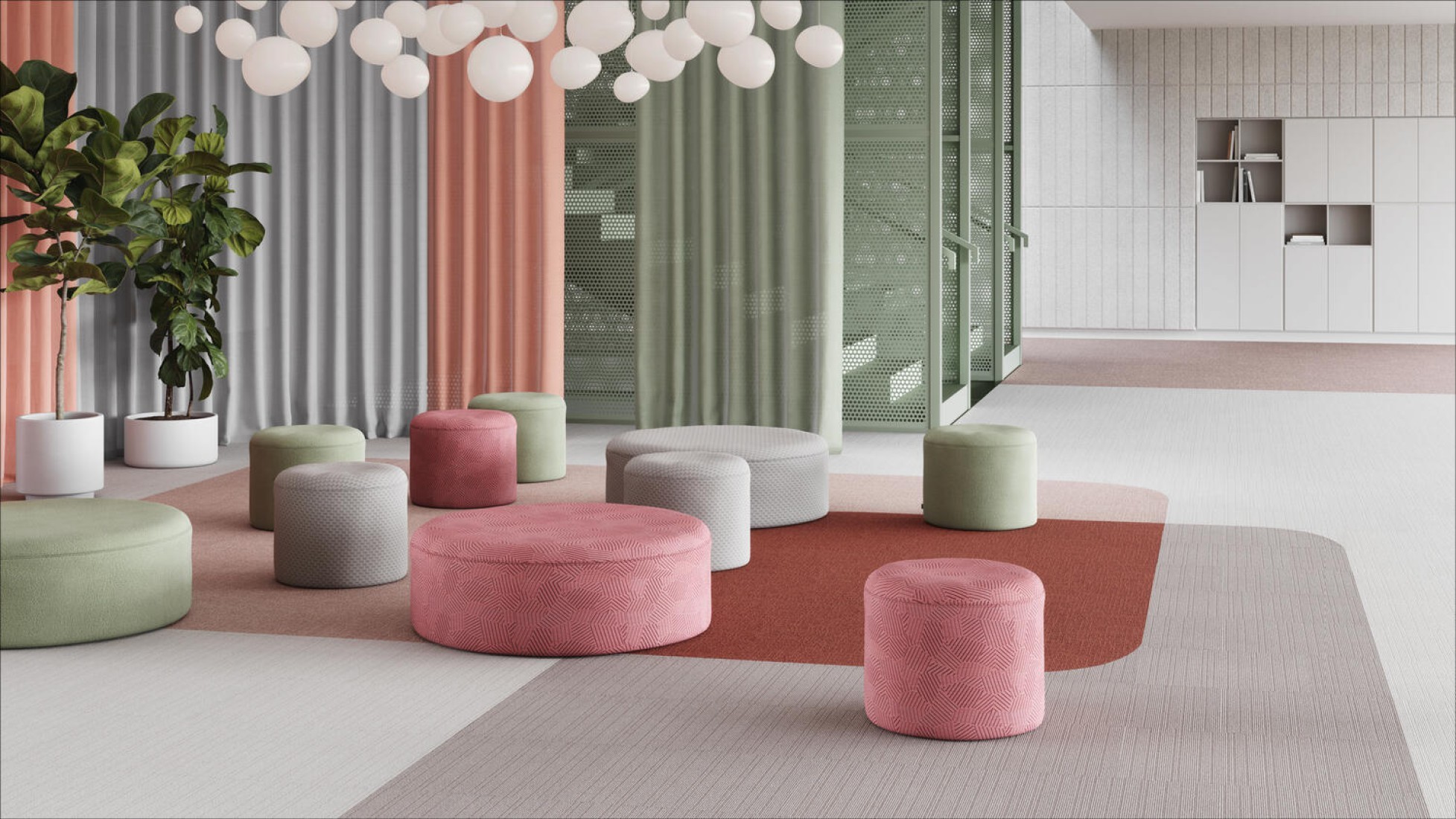 De AirMaster Earth-collectie biedt een indrukwekkende diepte en tactiliteit, dankzij opvallend zwart garen, ton-sur-ton kleuren en een onregelmatig, organisch patroon. Deze 9 nieuwe accentkleuren en 9 neutrale tegels kunnen worden gebruikt om opvallende vloerontwerpen te creëren met Classic en Sphere, zoals pronkstukken in kamers of als werkplekzonering en routing.
