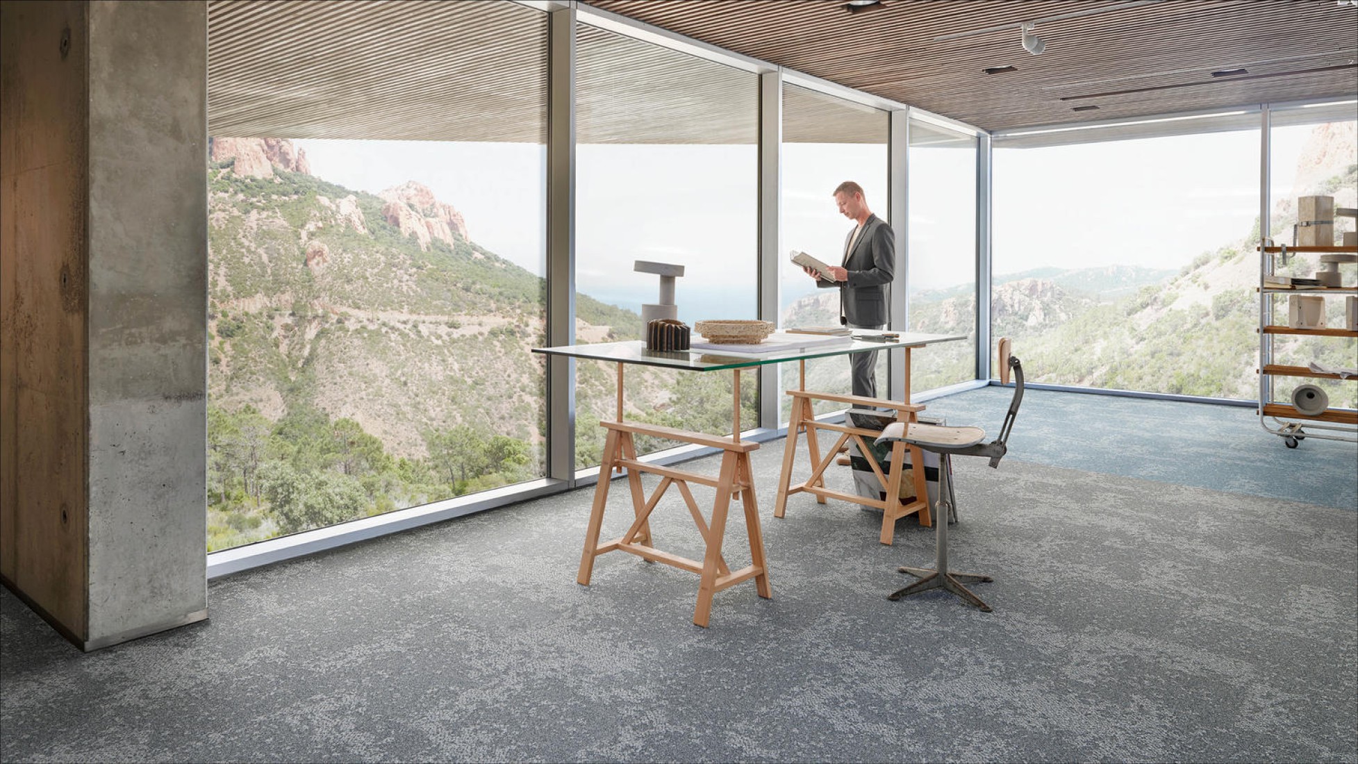 De DESSO Arable tapijttegel heeft indrukwekkend lage CO2 uitstoot, is echt duurzaam dankzij een innovatief productie proces met hergebruikte materialen welke zorgvuldig zijn uitgekozen..