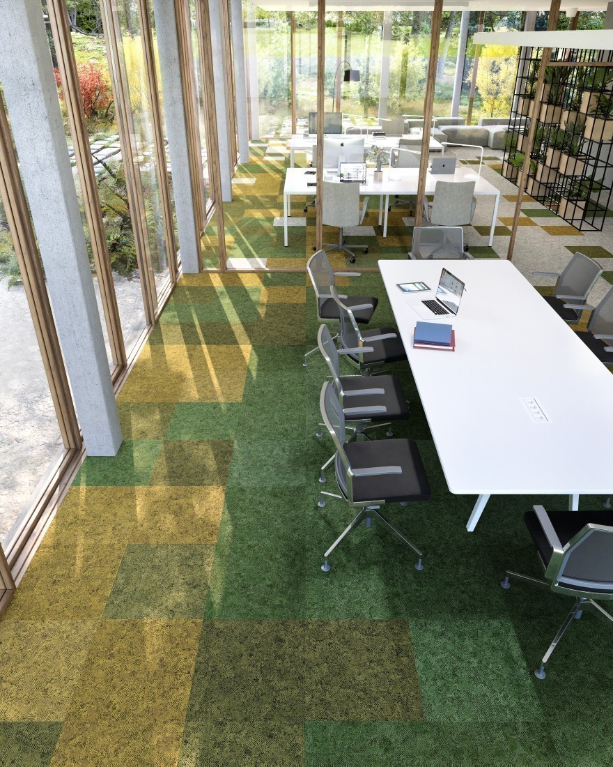 De bijzondere textuur van deze kantoortapijttegel doet denken aan bospaden die doorheen de seizoenen door wandelaars worden gevormd. Stukjes mos, lagen met bladeren, resten van takken … Ook het schaduw- en lichtspel van onderhout wordt nagebootst en benadrukt het organische en onregelmatige effect van het tapijt.